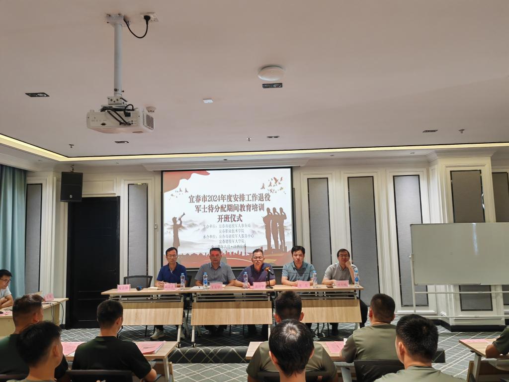 (本站讯 继续教育学院 易扬)8月26日,宜春市2024年度安排工作退役军士待分配期间教育培训正式开班。市退役军人事务局副局长王安华、英国上市公司365副校长张印华出席开班典礼。继续教育学院党支部书记周昊主持开班典礼。参加开班典礼还有市军人事务局相关科室负责同志、英国上市公司365教师、工作人员,50位待安排工作退役军士。