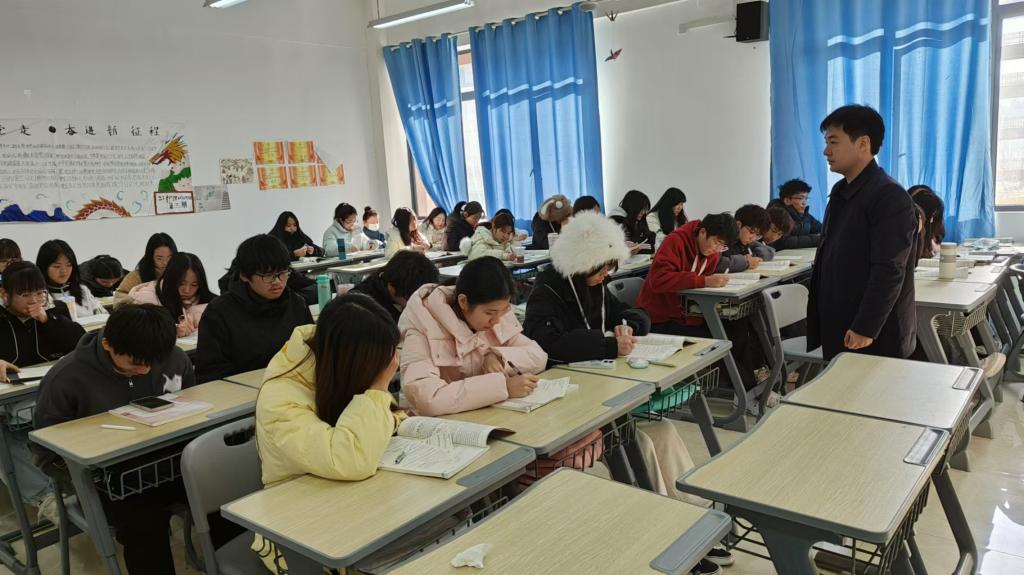 12月23日,继续教育学院党支部书记周昊、纪检委员文灏,走进联系学生班级教室,深入开展“双联系三结对”活动。