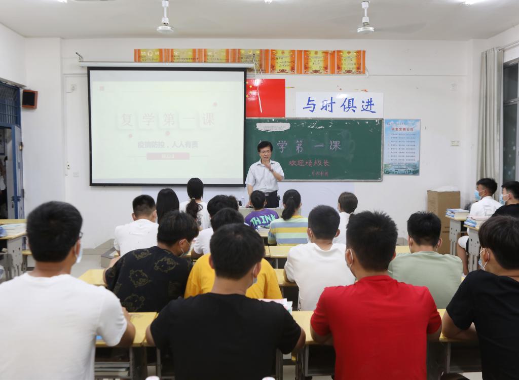 本站讯(马克思主义学院 彭慧洁 张莉彬 万露露)近日,为贯彻习近平总书记关于疫情防控系列讲话精神,发挥思政课立德树人的主渠道作用,确保疫情防控和复学复课工作顺利开展,学校领导班子成员分别来到各自联系的二级学院,为2019级大专生上“复学第一课”。
