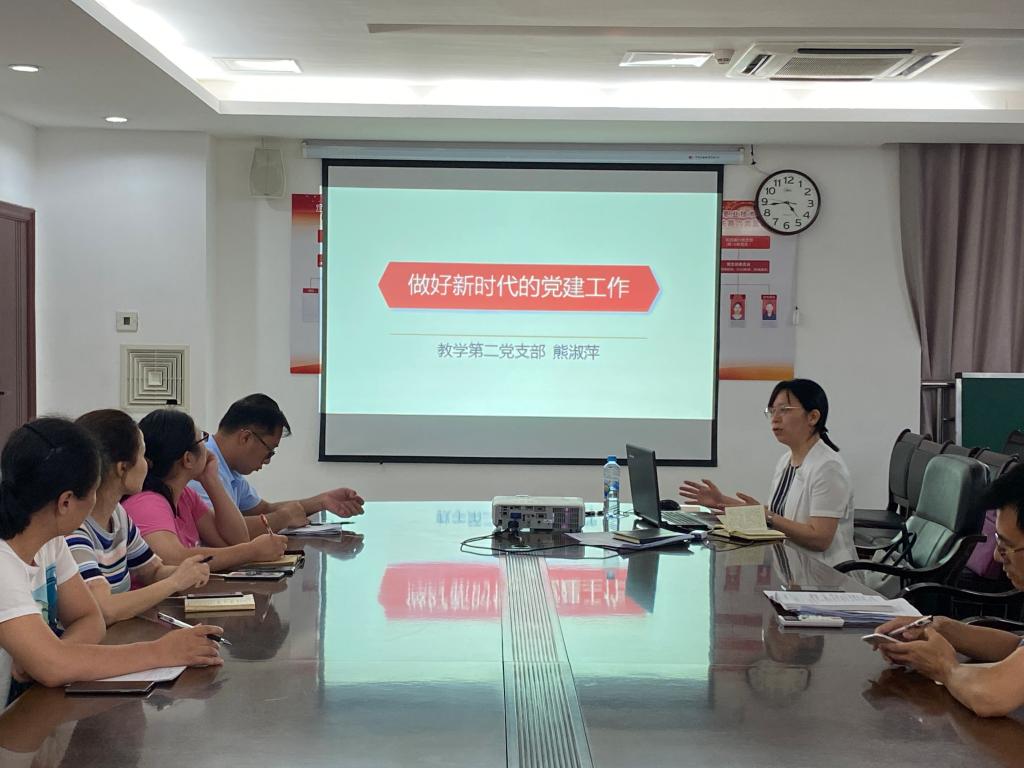 支部书记熊淑萍为全体党员讲授题为《做好新时代党建工作》的党课。首先,她通过讲述“三湾改编”“古田会议”等党史,介绍了“党的建设”这一思想法宝在党史上的重要性,并指明新时代党建工作重要性体现在“四个伟大”的论述中;其次,依据党的十九大报告,详细阐述了党的政治建设、思想建设、组织建设、作风建设、反腐倡廉与纪律建设、制度建设的理论渊源与主要途径。整堂党课内容充实,逻辑严密,有理有据。