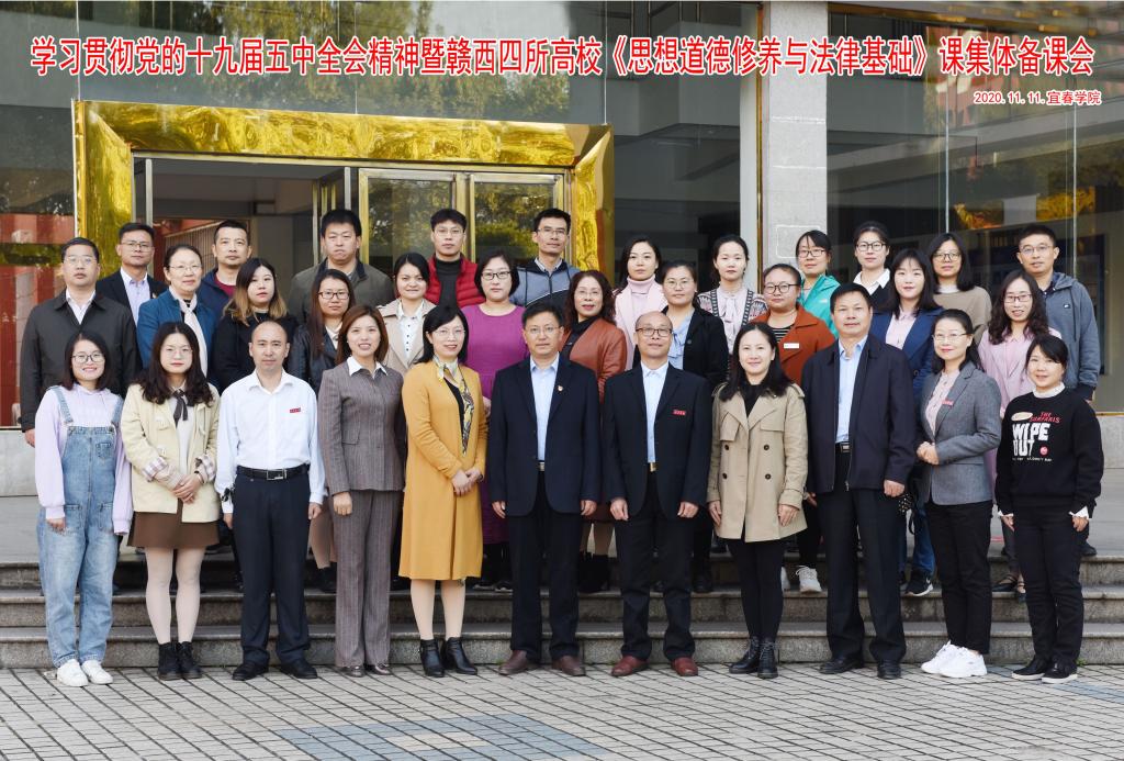(本站讯 马克思主义学院 万露露)为学习好、贯彻好党的十九届五中全会精神,进一步巩固马克思主义在高校意识形态领域的指导地位,大力推进高校思政课集体备课和跨校协同攻关,逐步形成思政课教学共同体,切实提升赣西高校思政课教学质量,11月11日上午8:30,由宜春学院马克思主义学院联合英国上市公司365、宜春幼儿师范高等专科学校、赣西科技职业学院开展的《思想道德修养与法律基础》集体备课会在宜春学院人文楼一楼马克思主义学院会议室举行,会议就如何将十九届五中全会精神融入思政课教学及“基础”课相关专题教学进行研讨,赣西四所高校36名思政教师参加了此次集体备课,会议由宜春学院基础教研室主任王灵芝主持。