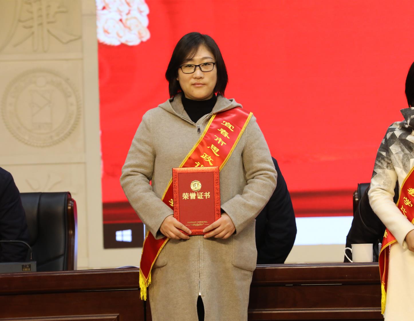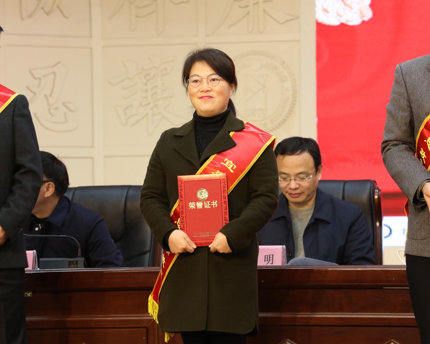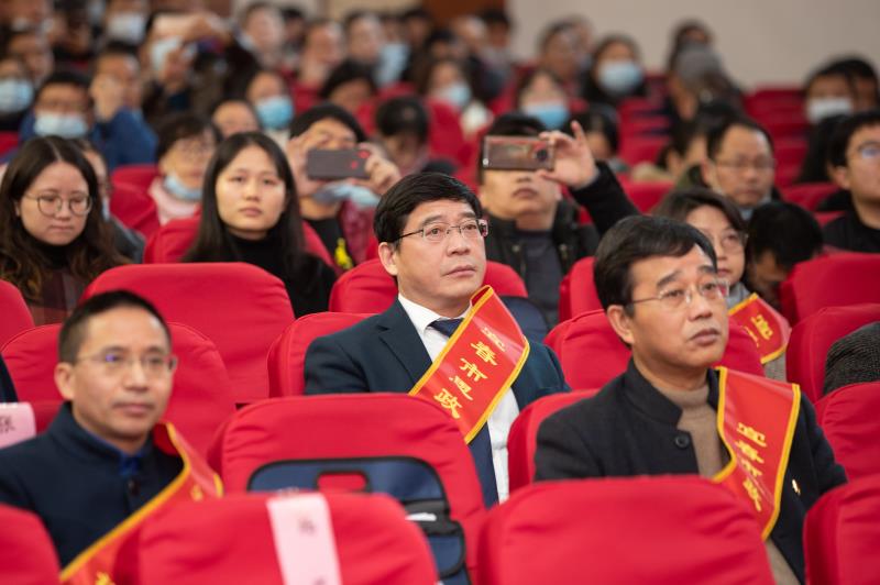本站讯(马克思主义学院 彭慧洁)12月10日,宜春市落实立德树人根本任务暨思政课建设总结会隆重召开。市委书记于秀明,市委副书记、市长许南吉,市委副书记饶利萍,市委常委、宣传部部长袁川,市委常委、组织部部长余正琨,副市长胡江萍,省教育厅二级巡视员杨美珍等领导亲切会见了获表彰代表。袁川、胡江萍、杨美珍等领导出席会议并颁奖。全市各高校、各县市区教育行政部门分管领导、获表彰代表、学校校长、教师代表六百余人参加会议。