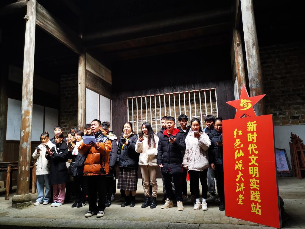 19日上午八时,师生乘车前往湘鄂赣革命根据地政治、经济、军事、文化的中心——有“小莫斯科”之称的万载县仙源乡。在近两小时车程中,师生共唱红色歌曲、讲革命故事,为开展思政课红色文化教学预热。