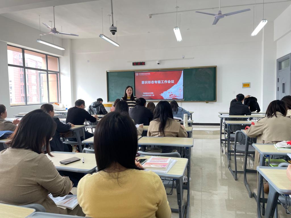 本站讯(马克思主义学院 卢凯)3月11日下午,马克思主义学院于正心楼B214室召开了专题会议。院长彭慧洁主持,全体思政课教师参加。