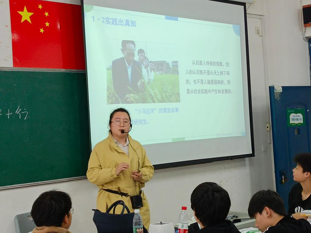 公开观摩课由教师蔡岚玢主讲,讲授课程为《哲学与人生》。课上,蔡岚玢老师用视频导入创境激趣,引发学生兴趣,用浅显易懂的案例,引导学生通过联系实例,审视自己;采用问题教学法,使学生理解实践和认识之间的关系。授课过程中,蔡岚玢老师教态自然、大方,思路清晰,内容充实完整。公开课后,大家进行了评课,一致认为,蔡岚玢老师对教学内容熟悉,精神饱满,表达准确,有条不紊,准备充分,值得学习。