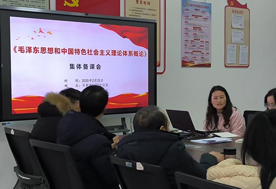 本站讯(马克思主义学院 刘恋)为进一步提升思政课教学质量,提升思政课教师教学能力,2月25日下午,马克思主义学院在日新楼C402开展《毛泽东思想和中国特色社会主义理论体系概论》课集体备课会,全体任课教师参加,会议由南丹主持。