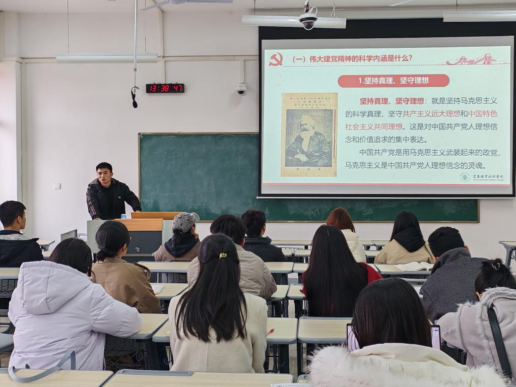 会上,黄斌军老师以《踔厉奋发 勇毅前行——伟大建党精神的科学内涵》为题,进行了精彩的教学展示。他从历史维度出发,深刻剖析了伟大建党精神形成的时代背景、丰富内涵及其在中国共产党百年奋斗历程中的重要作用。他强调,伟大建党精神涵盖坚持真理、坚守理想,践行初心、担当使命,不怕牺牲、英勇斗争,对党忠诚、不负人民四个方面,是中国共产党人的精神之源,是新时代中国共产党人继续砥砺前行的强大动力。