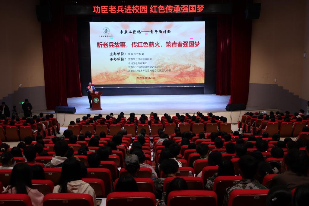 本站讯(马克思主义学院张保揭 况欣妍)为传承红色基因,弘扬工匠精神,引导学生坚定理想信念,在马克思主义学院党支部的教师代表的带领下,星光社会实践小组全体成员于2025年10月21日晚上在博达楼小礼堂参加“听老兵故事,传红色薪火”活动,活动由学校党委委员、副校长张彩凤主持。
