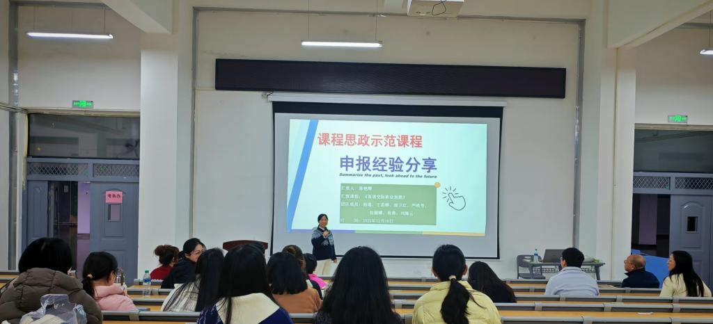 分享会上,陈艳辉以《校级课程思政示范课程申报材料准备》为题,结合自身主持《英语交际职业技能》课程申报的实战经验,从“政策文件深度解读、申报材料系统筹备、申报书精准撰写”三大核心维度展开细致分享。