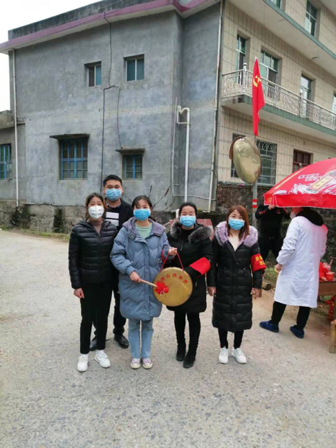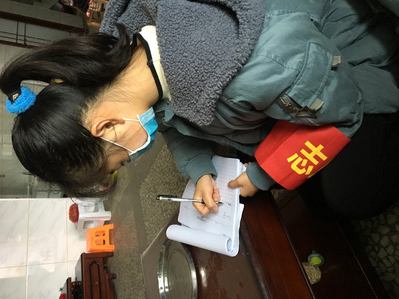 辛颖与村委的工作人员一起巡村,宣传疫情防控和禁止外来车辆、外来人员进村,并为村民测量体温,宣传防疫知识,呼吁大家不信谣,不传谣。