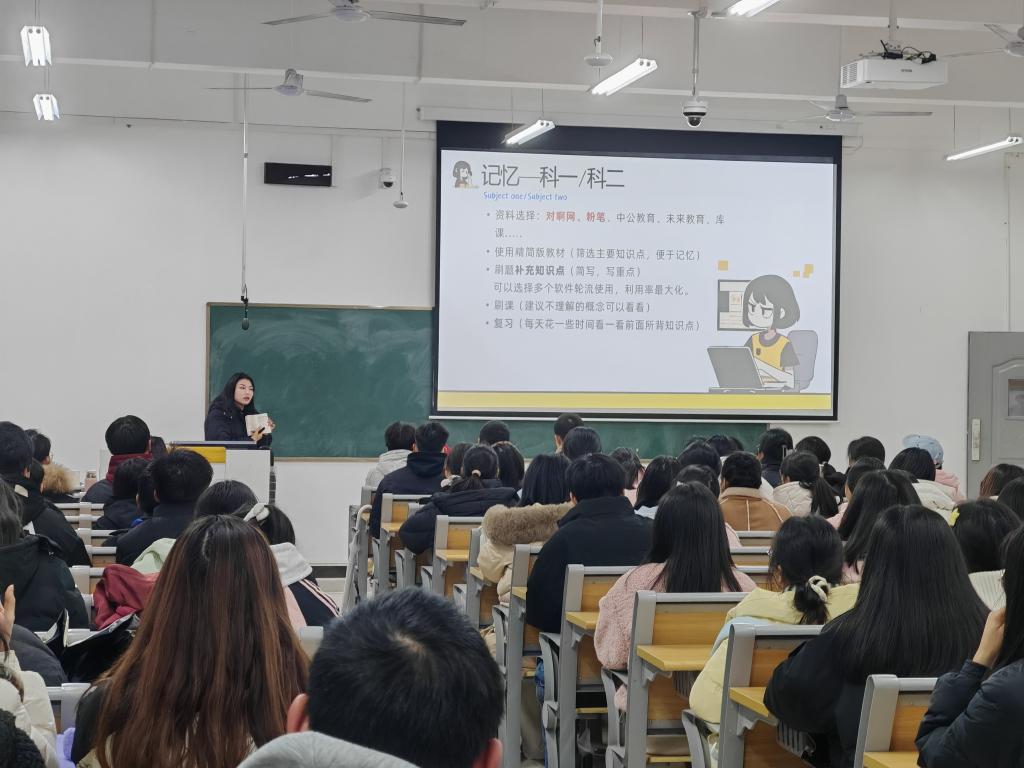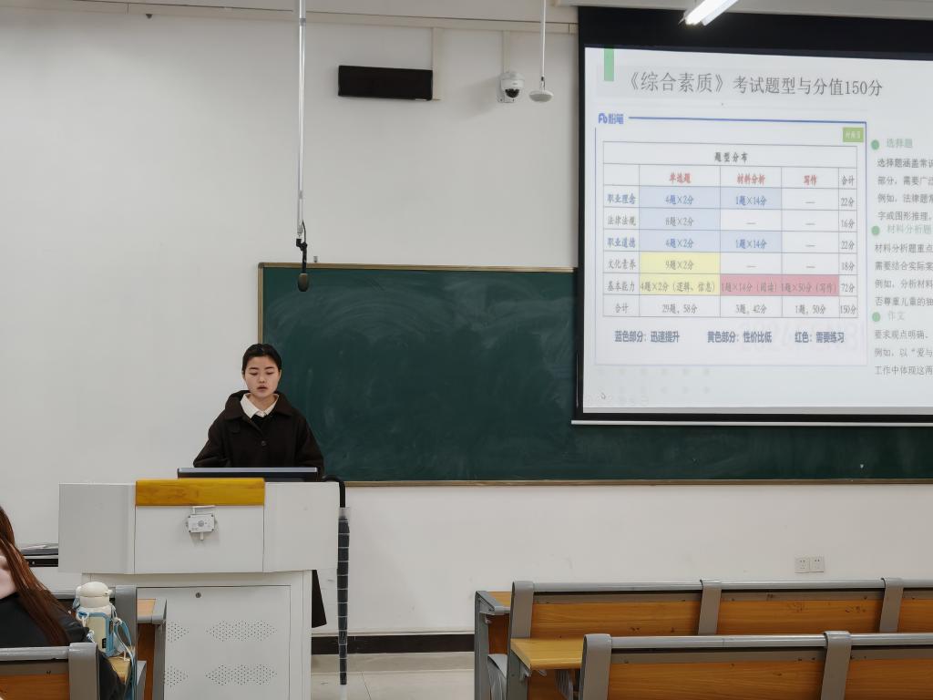学生工作党支部副书记袁旭发表开场致辞。她强调教师资格证对于同学们未来职业发展的重要性,阐述此次活动的意义与目的,鼓励同学们积极交流、认真学习,从分享中汲取宝贵经验。