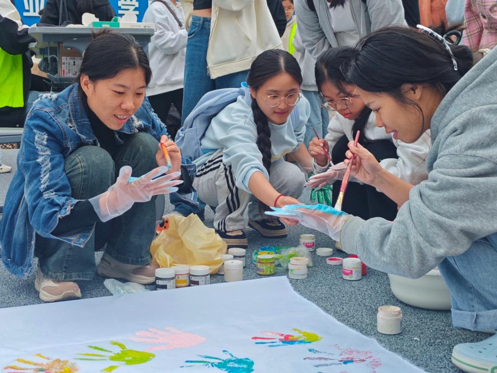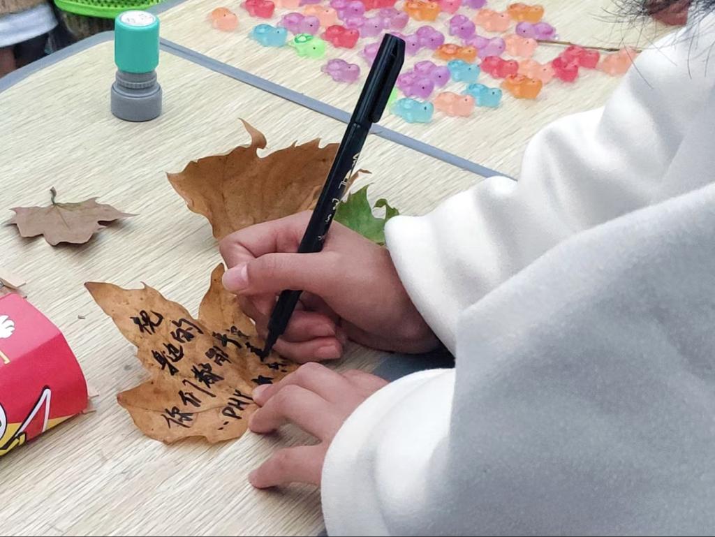 在“落叶签到”“捡秋天”“给秋留个印记”等环节中,同学们对秋天这一独特的意象“落叶”进行创作,描绘出自己心中独一无二的胜春秋华。“扇出七彩秋”环节,同学们纷纷动起手制作漆扇,体验这项独特的非遗技艺,并在实践体验中真切感受到中华优秀传统文化的无穷魅力。在“‘筝筝’日上”环节,怀揣着美好愿景的同学们在现场工作人员的帮助下放飞风筝,大家的憧憬和希望随着风筝向远方启航。