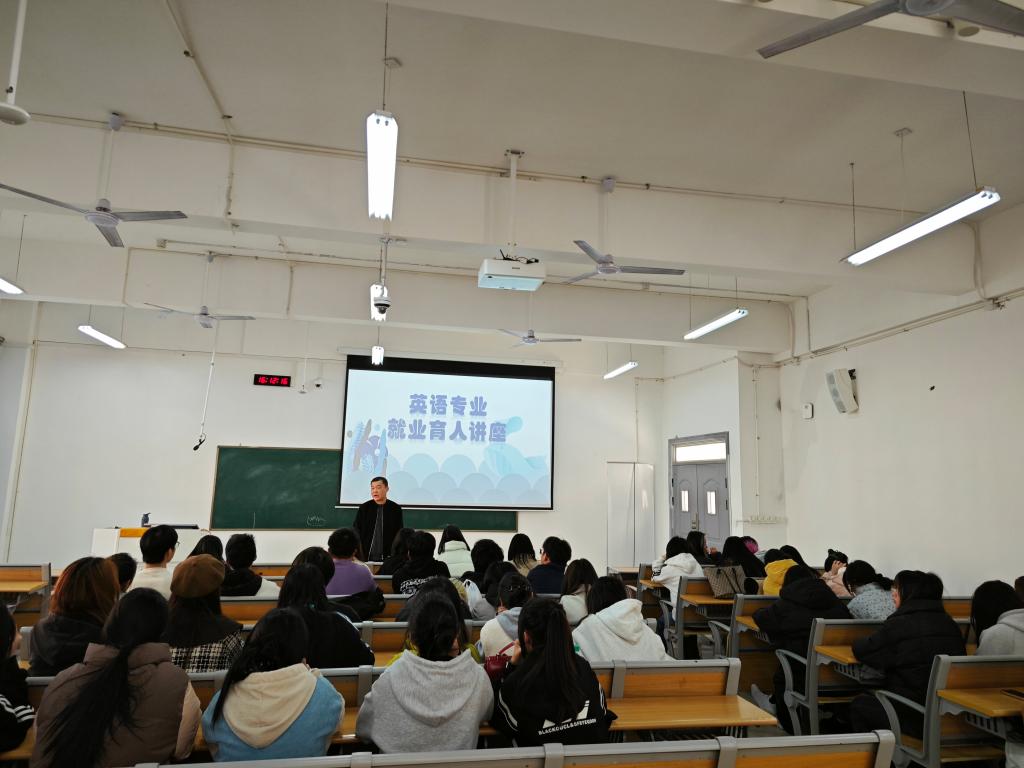 本站讯(师范学院 暨琨)为落实就业指导工作要求,提升应用英语专业学生的就业竞争力,明确就业方向,4月1日,师范学院在正心楼413教室开展就业育人讲座,讲座由副院长杜欣宇主讲,应用英语专业全体在校学生参与。