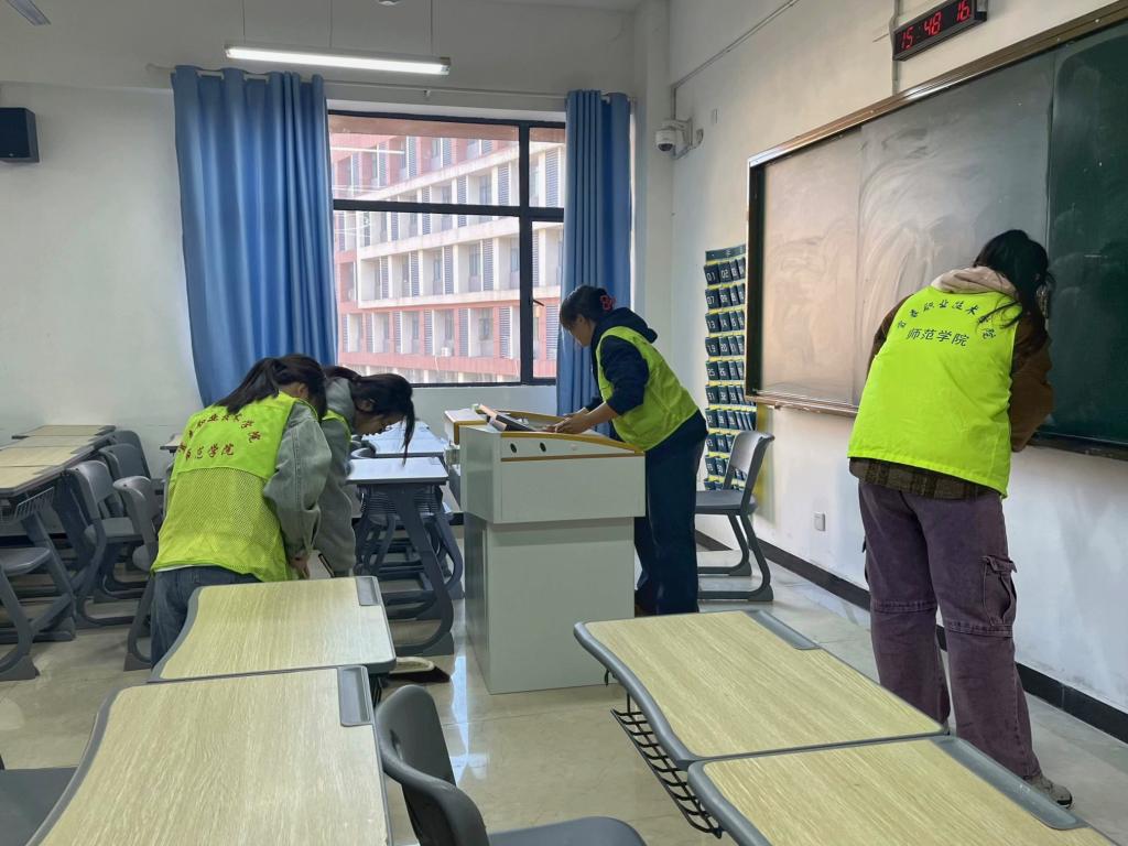 12月1日下午,学习小组成员于正心楼开展“‘锋’从指间过,志愿我先行”学雷锋志愿活动。通过打扫教学区域,消灭卫生死角等活动,同学们用实际行动诠释了“奉献、关爱、互助、进步”的志愿精神。