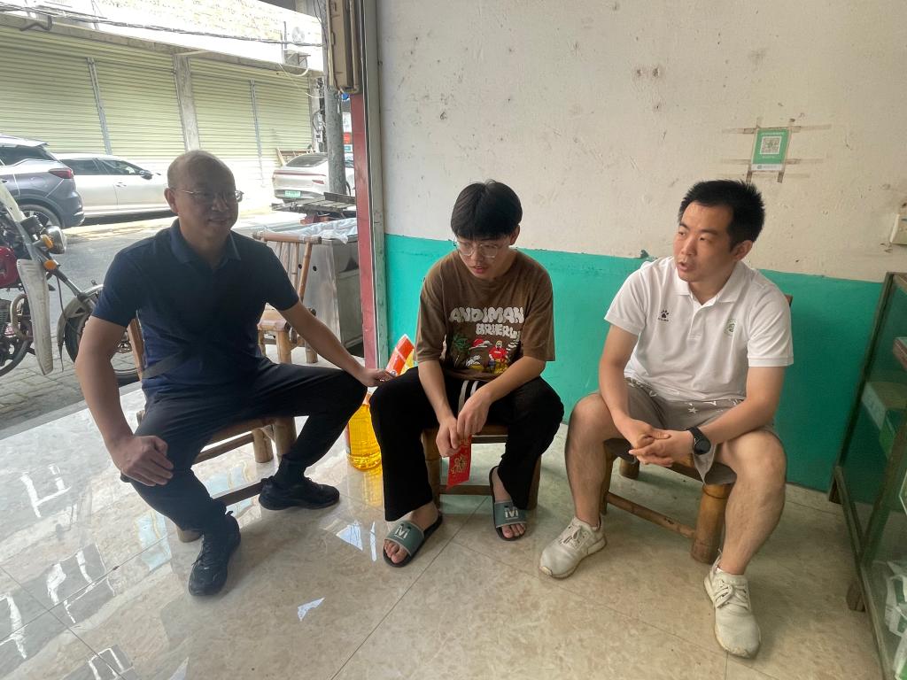 本站讯(师范学院党总支 任玉慧)为进一步贯彻落实国家贫困生资助政策,提高资助精准度,7月1日,师范学院党总支开展2023年暑期走访慰问困难学生活动。院长肖勇、副书记任玉慧及班主任潘煜一同前往宜春市袁州区水江镇走访慰问家庭经济困难学生,并给予慰问金。