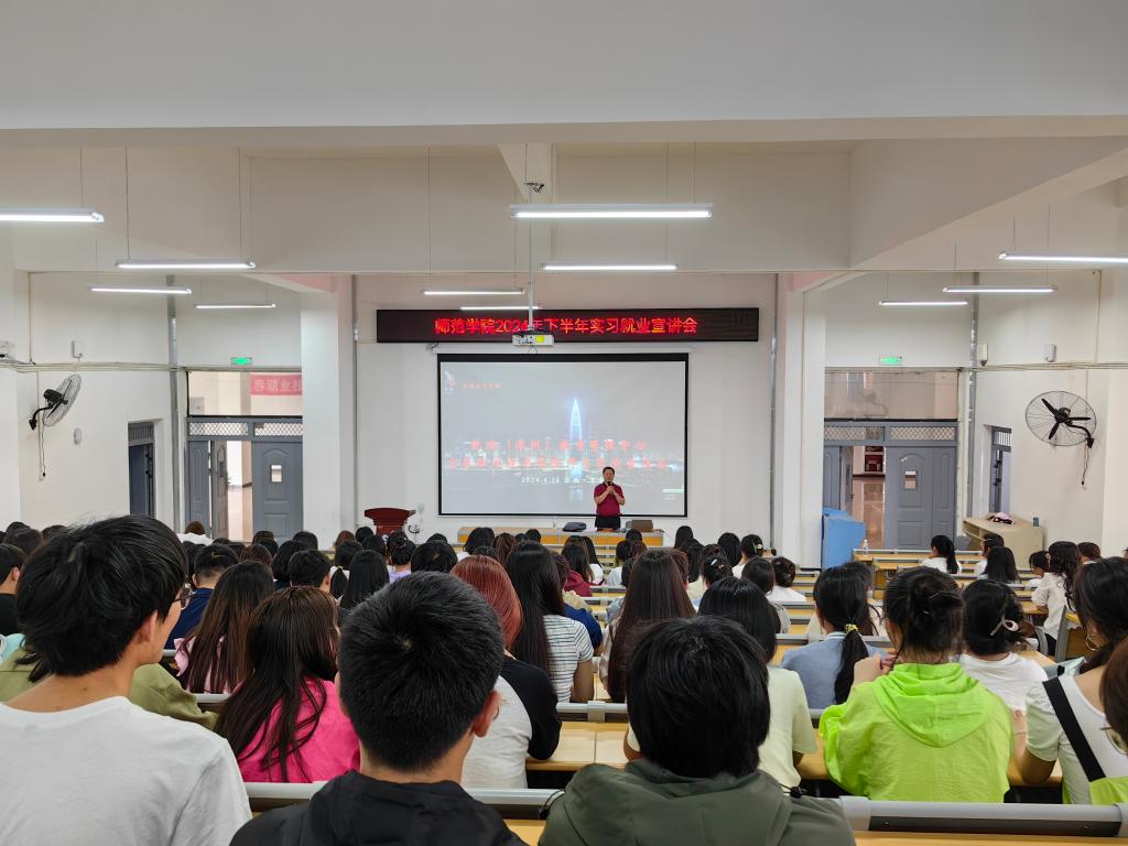 本站讯 (师范学院 暨琨)4月27日下午,师范学院在博达楼学术报告厅、正心楼阶梯教室举行了四场实习就业招聘宣讲会。本次宣讲会旨在为即将实习和毕业的学生提供更多的实习就业机会,同时也为用人单位提供了一个选拔人才的机会。