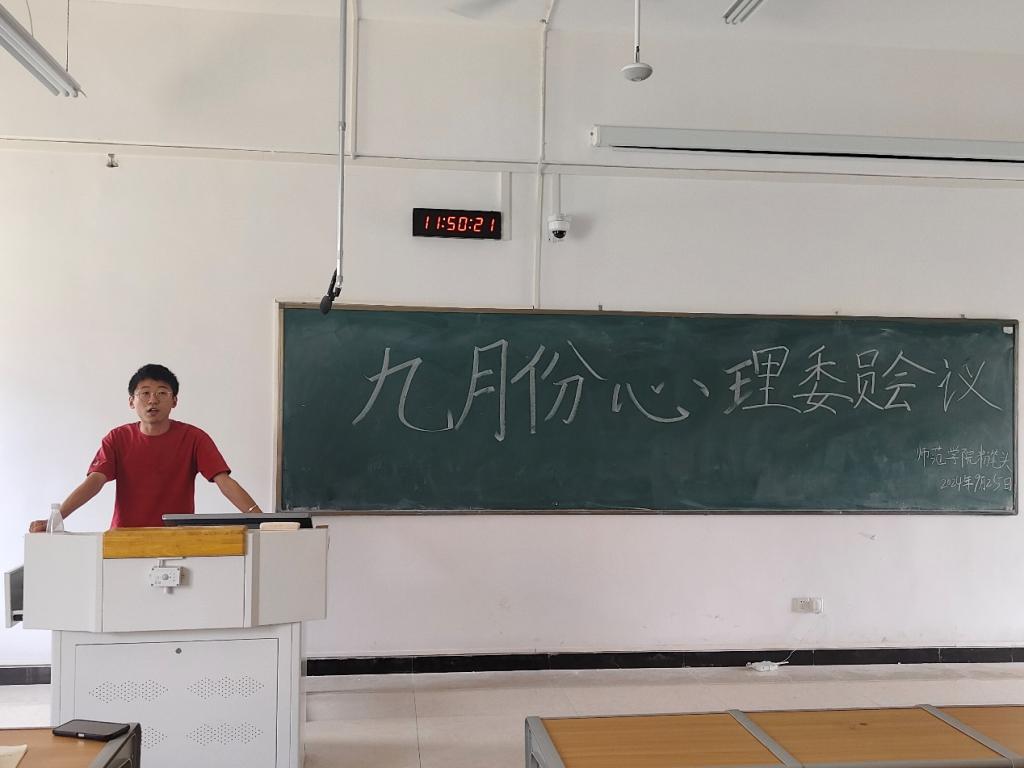 本站讯(师范学院 吴滨欣 学生记者 李雅萍)为提升心理委员的工作能力和心理健康知识水平,师范学院于9月25日中午在正心楼D209教室召开本学期第一次全院心理委员会议。本次会议由辅导员吴滨欣主持,学院心理委员共计80余人参加了会议。