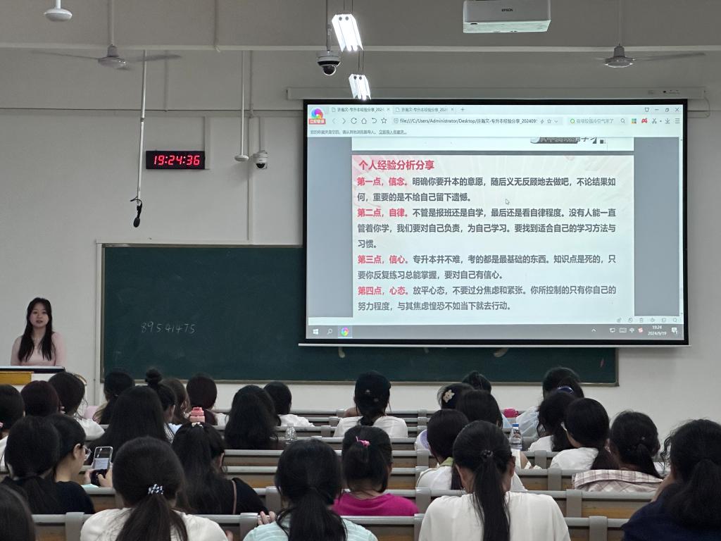 此次分享活动,充分发扬了优秀学生党员的榜样示范引领作用,有助于引导广大学生树立正确的学习观,对专升本考试有更加清晰的认识和定位,为同学们的发展搭建了良好的沟通交流平台。