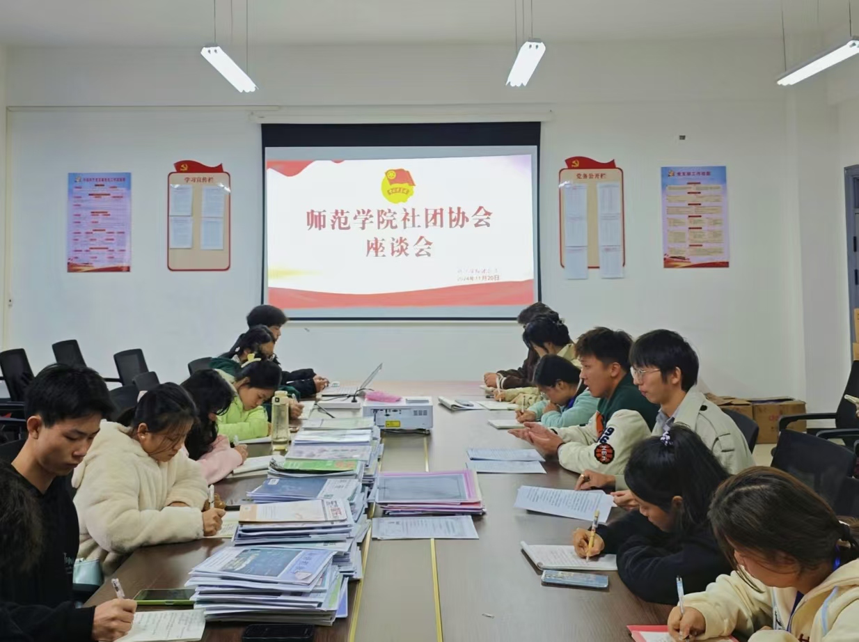 本站讯(师范学院 王焕 学生记者 唐雨)为进一步凝聚社团力量,充分发挥社团育人功能,推动师范学院更高效率、更高质量地进行社团协会的日常工作,11月20日中午,师范学院在正心楼B204会议室召开社团骨干座谈会。出席本次会议的有院团总支书记霍文杰、辅导员老师王焕、各社团协会骨干以及学生会权益部工作人员。