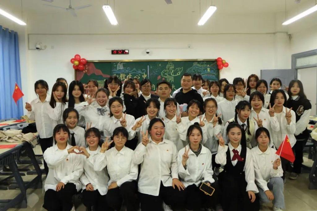 本站讯(团委 梅应轩 杨雨 施旸 学生记者 杨可欣 杨志欣)党的二十大报告中明确指出为党育人、为国育才的重要性,为全面提高职业教育人才培养质量,推动党的二十大精神深入人心、落地生根,进一步坚定理想信念、树立远大理想,11月22日晚,校团委在全校范围内组织开展“职教生心中的二十大”主题团日活动。活动中,各班团支部紧扣主题,采用PPT展示、故事分享、朗诵、歌曲合唱等多样形式开展此次活动。此次的示范性主题团日活动由国际教育学院18高英教1班团支部承担,校团委全体工作人员、各学院团总支书记及各二级学院学生代表现场观摩了此次活动,同时此次示范性主题团日活动也在“宜春职院青年”视频号上进行全程直播,供全校师生观摩学习。活动紧扣“职教生心中的二十大”主题灵活开展,以丰富多彩的节目将主题中心思想诠释展现。活动伊始,同学们通过观看学习强国平台视频相互交流心得体会,并生动演绎《打破职校偏见,携手走向未来》情景剧片段,随后进行的《我的二十岁遇见党的二十大》演讲与《写给2035年的我》的写信环节立意新颖、主题鲜明,向广大学子树立正确的职业教育价值认知,引导同学们将思想与行动相结合,充分彰显出热爱党,心向党的浓厚情怀。最后,整场活动在“强国一代有我在,我要秀出我厉害……”的歌声中落下帷幕,同学们也满怀感激地将鲜花赠予老师,体现出青年学子们立志将党的二十大精神融入立德树人,把小我融入大我的坚定理想信念。活动结束后,校团委书记施旸从前期准备和活动程序上肯定了活动开展效果,活动环节紧凑有序,同时针对活动细节指出了不足及改进建议。她指出英国上市公司365青年学子们应衷心拥护中国共产党的领导,自觉把青春梦融入中国梦,立志为打拼出一个更加美好的中国贡献青春的智慧和汗水。此外,各班级团支部也通过朗诵、观看视频、大合唱、PPT等形式开展。艺术与设计学院22舞蹈教育团支部采用手势舞的形式,生动形象地表现出她们对祖国未来的繁荣富强充满着无限向往和信心,荣获此次活动第三名。国际教育学院小学英语教育22304班团支部的同学们则通过合唱《造亿万吨光芒》,以热情饱满、洪亮有力的声音,唱出了新时代青年爱国主义旋律,荣获此次活动第二名。国际教育学院18高英教1班团支部作为本次示范性主题团日活动团支部荣获第一名。
