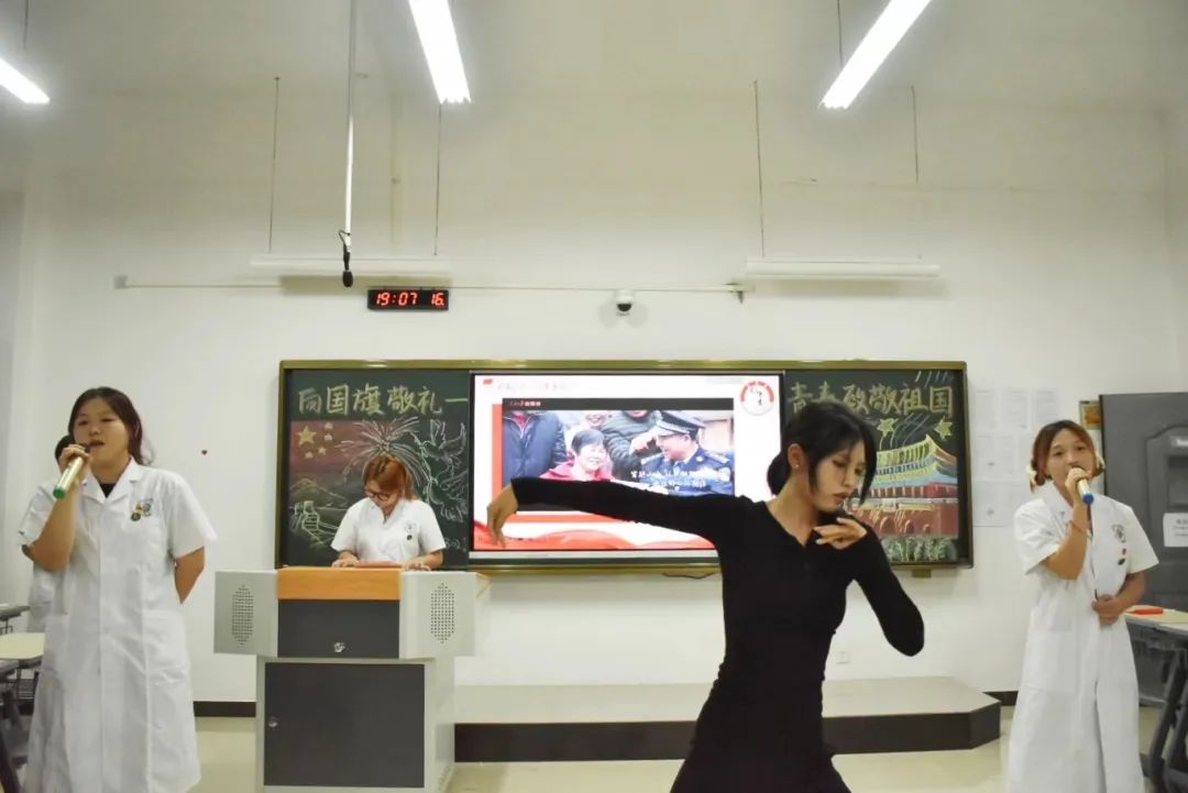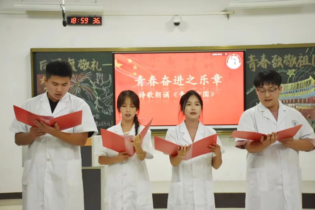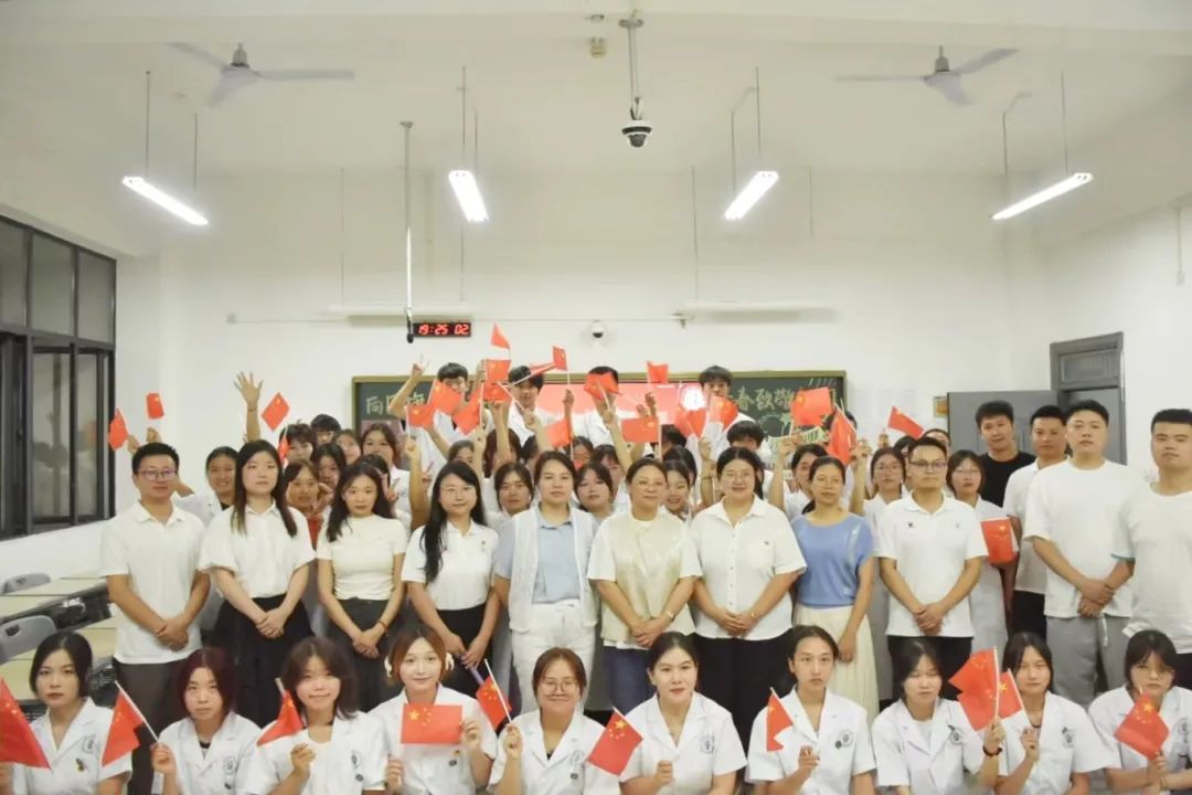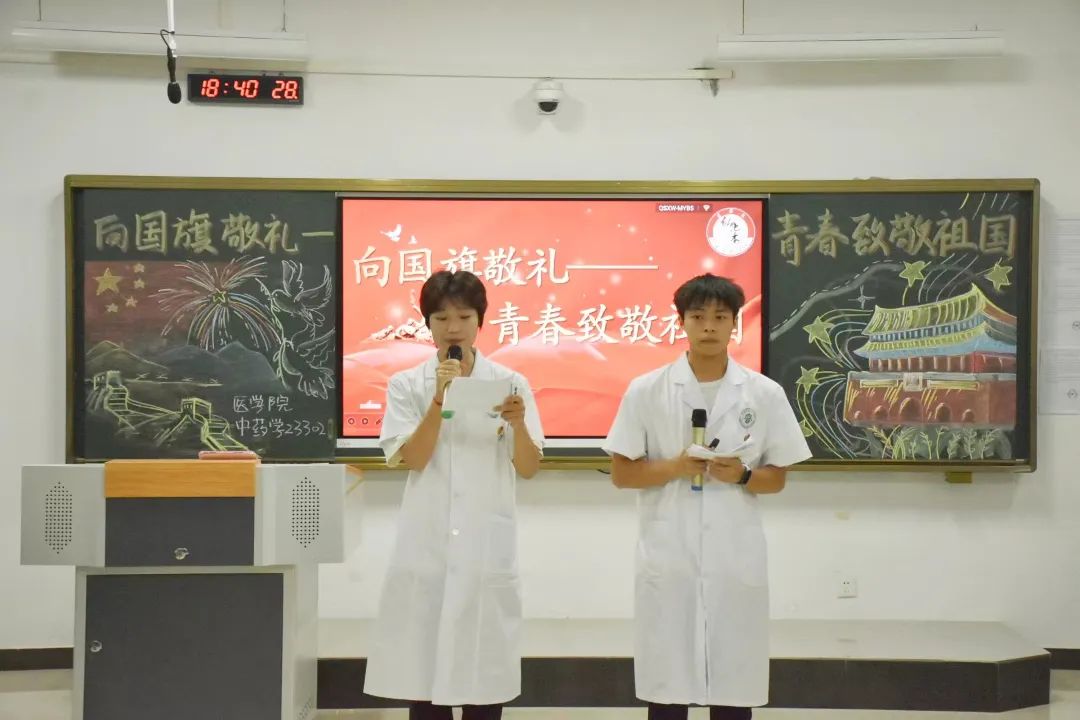 本站讯(团委 曹招 刘嘉妮 王玮 学生记者 邹欣宇 鲁思甜)以青春之热血,致敬盛世之中华。为激发广大青年学子的责任感和使命感,弘扬爱国主义精神,培育同学们的社会主义责任感,9月24日晚,校团委在医学院组织开展“向国旗敬礼——青春致敬祖国”主题团日活动。此次示范性主题团日活动由医学院中药学23302班团支部承担,校党委委员、副校长张彩凤,校团委书记王玮,副书记刘嘉妮及校团委老师、医学院部分领导老师、各二级学院团总支书记前往现场观摩,此次活动也在“宜春职院青年”视频号上同步直播,全校师生进行线上观摩学习。活动伊始,通过“观国之变迁”切入主题,视频中青年向光而行的奋斗之路引发了同学们对爱国主义的思考。同学们上台分享的自己学习感悟,深刻诠释了时代各有不同。行走的银色医药箱——邓华校友的事迹如同一盏盏明灯,照亮前行道路。朗读之声不绝于耳,强国之音掷地有声,四位同学声情并茂的朗诵《青春中国》和电影片段快问快达环节,犹如身临其境,不禁感叹百年征程映初心,党的奋斗铸辉煌。最后,通过钢琴演奏《星辰大海》,继而伴随着舞蹈合唱,同学们集体手举小红旗,整齐划一,洋溢着青春活力,谱写新时代青春之歌,奏响青春华章。此次示范性主题团日活动点评嘉宾信息工程学院团总支书记黄彪表示,在同学们身上他感受到了青春蓬勃的朝气,同时呼吁同学们继续发扬爱国主义精神,为中国梦接力。张彩凤副校长指出此次活动既是一次深刻的爱国主义教育,也是一次青春的致敬,更是一次新时代青年的庄严承诺。她对于同学们丰富用心的活动安排给予高度赞许,且给出了三句话作为勉励,也作为鼓励——因为青春所以奋斗,因为热爱所以坚持,因为自信才会张扬。她表示青春有很多种答案和色彩,广大青年学子应心怀梦想,勇敢前行,做好自己,向善向上!