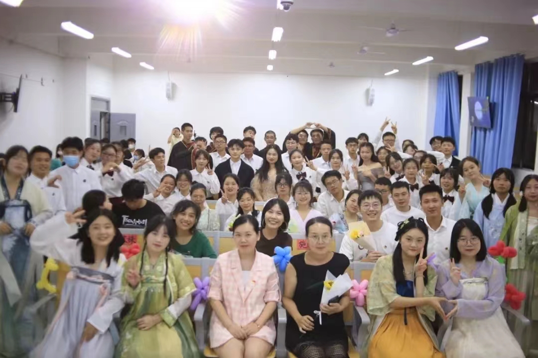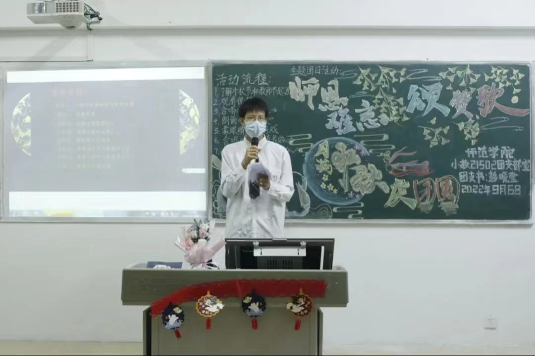 活动最后,全体在场师生进行合影留念,体现出亦师亦友、和睦融洽的师生关系。活动结束后,校团委书记施旸从前期准备、活动程序上肯定了活动开展效果,活动环节新颖有趣、内容丰富,突显出了当代大学生朝气蓬勃的时代风貌,同时也对活动细节指出了一些不足及改进建议。此外,各班级团支部也通过PPT展示、诗词竞答、朗诵等方式组织开展活动。电商与旅游学院旅游20501班激情洋溢的PPT讲解引人入胜,同学们以高涨的热情投入其中,表达了同学们对老师的崇敬与祝福,掀起崇尚师德、弘扬师德的热潮,荣获本次主题团日活动第三名。“感恩的心感谢有你,伴我一生,让我有勇气做我自己,感恩的心感谢命运……”师范学院小教21502班通过合唱《感恩的心》,以抑扬顿挫、饱含热情的声音歌颂老师们忠诚于人民教育事业、不求回报的崇高奉献精神,荣获本次主题团日活动第二名。师范学院19高小教1班则作为本次示范性主题团日活动班级荣获第一名。