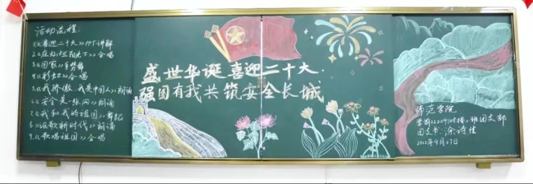 活动中,各班团支部紧扣主题,采用PPT展示、故事分享、情景演讲等形式多样化开展此次活动。此次的示范性主题团日活动由护理学院助产22301班承担,校团委全体工作人员、各学院团总支书记及各二级学院学生代表现场观摩了此次活动,同时此次示范性主题团日活动也在“宜春职院青年”视频号上进行全程直播,供全校师生观摩学习。活动围绕庆国庆、喜迎党的二十大,坚决捍卫国家安全三个部分灵活开展,以丰富多彩的节目将多个主题融会贯通。同学们通过观看学习强国平台相互交流心得体会,让大家重温了祖国在党领导下的百年奋斗光辉历程。随后,通过生动演绎《国家安全、人人有责》情景剧片段,引导着同学们领会国家安全人人有责、人人可为的深刻内涵,并通过大声朗诵《读中国》,在同学们的心中厚植爱党爱国情怀。活动最后,同学们铿锵有力、激情澎湃地合唱《我们都是追梦人》,表露出青年学子们必将肩负起实现中华民族伟大复兴重大历史使命的决心。活动结束后,校团委书记施旸从前期准备和活动程序上肯定了活动开展效果,活动环节紧凑有序、富有青春朝气,展现出了当代大学生奋发向上的时代风采,同时针对活动细节指出了不足及改进建议。她提出,要始终牢记习近平总书记的殷殷嘱托,希望更多青年学子尽展强国有我,奋进新时代的青春向党之心。