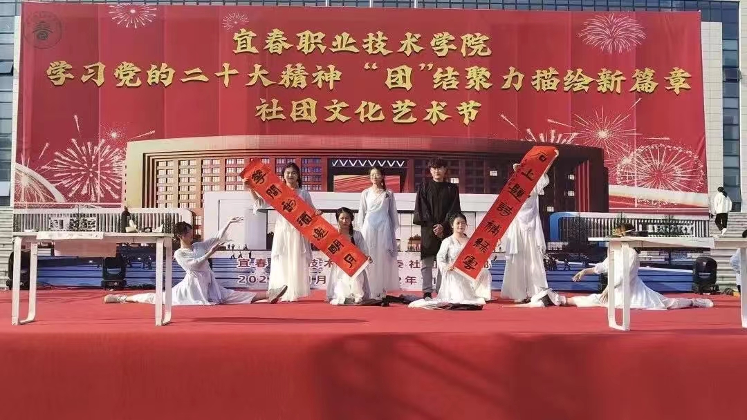 护理学院器乐协会和艺术与设计学院的电声乐队合作带来的歌曲串烧激情四射,拉开了社团文化艺术节的序幕。“宜职之声”协会带来的朗诵《青春华章》和艺术与设计学院同学们带来的舞台剧《热血》描绘着我国青年一代的青春色彩,开幕式在街舞协会青春活力的舞蹈《舞动青春》中落下帷幕。随后副校长刘叶建为开幕式致辞,她指出,这次的社团文化艺术节,既是学校开展“学习党的二十大精神”的主题教育的一堂专题课,也是广大宜职学子弘扬“五四”精神,锤炼品格本领的一堂实践课。