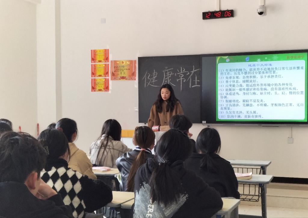 吴卿妍从“健康是什么”“你真的健康吗”提问现场同学,引发大家讨论,随后从健康的概念、心理健康与社会关系和大学生如何保持健康心态、世界卫生组织提出的十个健康标志等方面内容跟大家普及了心理健康方面的相关知识。在授课过程中,吴卿妍与同学们积极交流,针对同学们提出的自己遇到的心理健康问题,她也提出了相应策略和解决方法。
