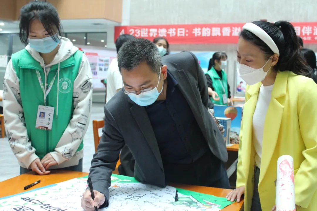 本站讯(团委 梅应轩 图书馆 杨慧 学生记者 孙佳丽 彭思宇 况鑫)最是书香能致远,腹有诗书气自华。为迎接“4•23世界读书日”的到来,营造浓郁的书香校园氛围,进一步增强同学们阅读的兴趣,4月22日12:00至18:00,图书馆与校学生会在校本部天工楼一楼图书馆大厅内联合开展了“书韵飘香溢校园•阅读相伴润心田”活动。本次活动面向全体在校师生开展,校党委副书记、校长邱军,校党委委员、副校长刘江毅及张印华,校团委和图书馆的部分老师们出席此次活动。活动由校学生会叶炳勇同学主持。