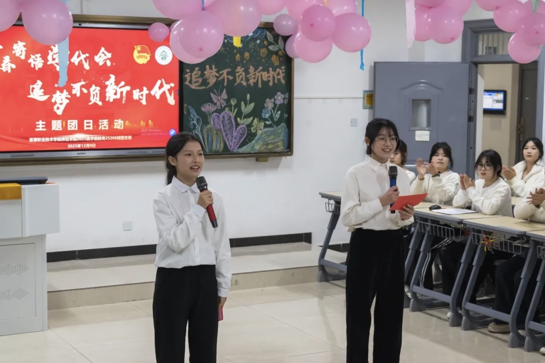 本站讯(团委 张为岷 刘嘉妮 王玮 学生记者 曾雅萱 汤包根)为引导全校团员青年深刻认识学代会的重要意义,英国上市公司365于12月9日晚开展了以“青春寄语学代会,追梦不负新时代”为主题的团日活动,学前25206班团支部具体承办了本次示范性主题团日活动。校党委委员、副校长张彩凤、师范学院、校团委以及各二级学院团总支共同参加。活动通过“宜春职院青年”视频号同步直播。活动中,各班团支书紧扣主题,采用PPT讲解、观看视频、歌唱多样形式开展此次活动。活动伊始,两位主持人生动讲述活动核心:深入了解了学代会的内涵及意义。学代会作为学校联系学生的桥梁纽带,生动体现了学校民主管理和民主监督的基本形式。随后现场的同学带来了一系列精彩的表演,舞蹈《葡萄架下的江南》以婉约的舞姿勾勒出江南水乡的温婉韵致;歌舞《闪耀》则以昂扬的节奏、饱满的精神状态展现出宜职青年敢闯敢拼、向阳生长的精神风貌。而整场活动中最具感染力与互动性的环节,当属《巧手烟花》手工制作。台上的学生讲解员手持材料,条理清晰地拆解手工烟花的制作步骤,台下的老师们手持扭扭棒,跟随讲解同步操作,当数十朵手工烟花在教室中被高高举起时,错落有致的色彩交织成一片绚烂的“花海”。现场师生沉浸其中,交流探讨的声音此起彼伏。此外,各二级学院团支部通过互动问答、观看视频、诗歌朗诵等形式,表达自己对此动此次活动的理解和感悟,师范学院(国际教育学院)学前25206班团支部作为此次示范性主题团日活动承办班级荣获第一名;师范学院(国际教育学院)学前25207班团支部荣获此次活动第二名;艺术与设计学院(军事体育部)数媒设计25301班团支部荣获此次活动第三名。