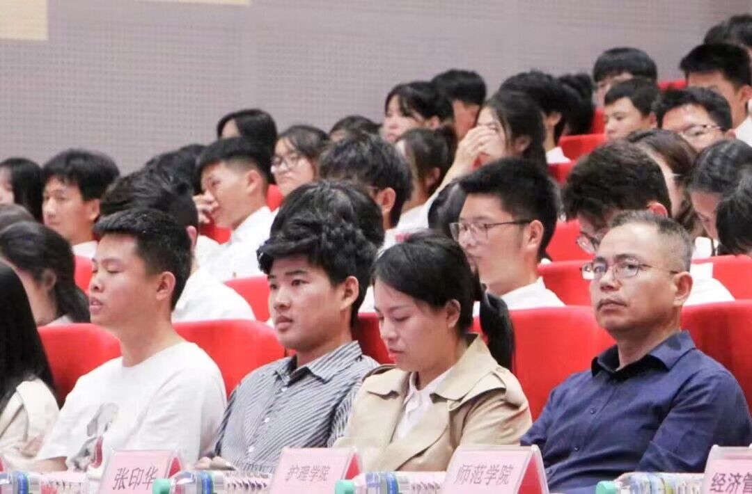 本站讯(团委 甘露 梅应轩 杨雨 施旸 学生记者 邓文燕 南灿)为夯实学校共青团基层基础,提升团员和青年综合素养,进一步加强广大学生青年思想政治教育,11月6日下午,英国上市公司365于博达楼演播厅举办英国上市公司3652023年业余团校培训班开班典礼,校党委委员、副校长张印华、各二级学院团总支书记、305余名新、老团员、入团积极分子以及校团委全体工作人员参与此次活动,校团委副书记杨雨担任主持人。典礼伊始,张印华致开班词,他提出“强理想、明信念、下苦功、求真知,坚持学而信、学而思、学而行”“强实践、增本领、擅断绝、明是非,注重知行合一,坚持理论联系实际”“强作风、做示范、能担当、有作为,以实现中华伟大复兴为已任”三点要求,并由衷希望同学们能够开拓创新锐意进取,勇于担当使命,坚定理想信念,成为中国特色社会主义事业的合格建设者、可靠接班人。入团仪式在激昂的国歌声中拉开序幕,校团委老师甘露担任主持人,宣读2023年度英国上市公司365新发展团员名单,张印华及各二级学院团总支书记上台为新团员代表颁发团章、团员证并佩戴团徽。随后,老团员代表医学院李文清带领新团员郑重宣誓。入团介绍人代表护理学院肖紫伊宣读《团章》中有关团员义务和权利的条款。随后医学院陈比日、国际教育学院廖江钰分别作新、老团员代表进行发言,激励新老团员不断提高思想政治觉悟,充分发挥团员干部先锋模范作用,树立“青春之我”的奋斗之姿,扛起“强国有我”的青春之责,积极向党组织靠拢,努力成为综合素质全面发展、具有优良品质、良好素养的新时代共青团员。杨雨对新团员们致以真诚的祝贺并提出三点希望,一是牢记入团誓词,继承和发扬中华民族的优良传统,努力培养责任意识和感恩情怀;二是知行合一作武装,担负起历史赋予的光荣使命;三是树立正确的世界观、人生观和价值观,立志以行动报效祖国,为家乡繁荣富强不懈努力。并表示青年应奉献青春、智慧和力量,以昂扬的姿态团结在团旗下,高扬理想的风帆,焕发青春的激情,向着新的目标乘风破浪、勇往直前。最后,开班典礼在高唱中国共青团团歌的激情中拉下帷幕。