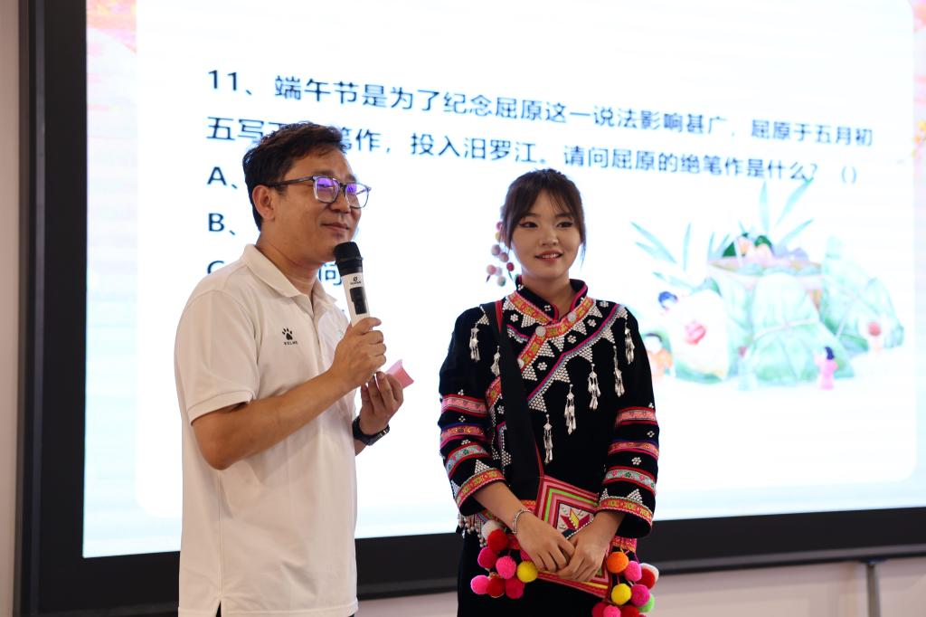 在知识有奖竞答环节,同学们热情高涨,争相举手抢答,现场气氛异常热烈。这一情景不仅展现了大家对端午文化的浓厚兴趣与热爱,更体现了他们积极参与、主动学习的精神风貌。