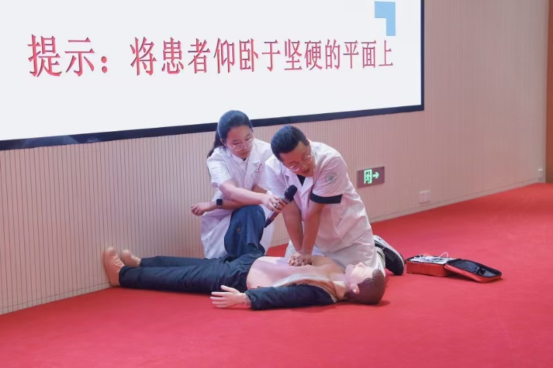 附属医院副院长袁经永、医生李翔从理论讲解和示范操作两方面着手,传授心肺复苏技能和AED使用方法,搭配简单好记的口诀,便于熟记。袁经永告知各位新生辅导员(班主任)学校AED投放地点,在必要时能以最快的方式找到并使用。