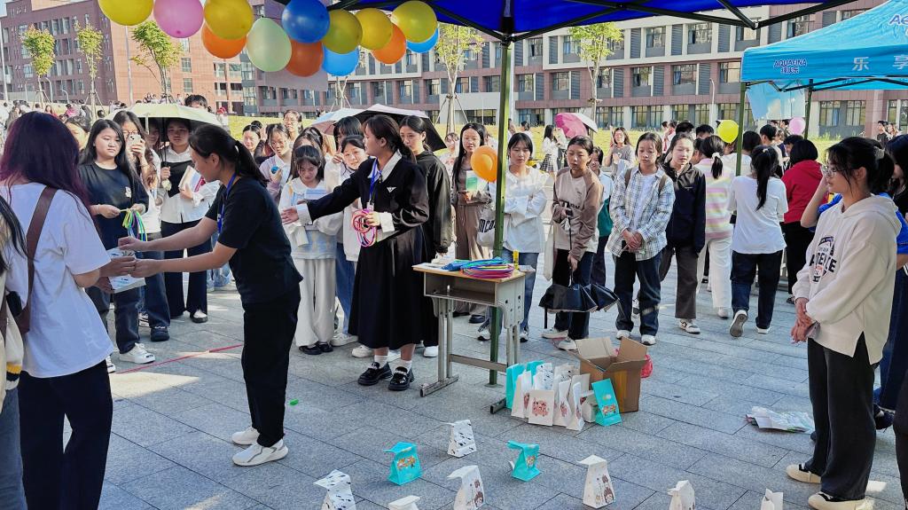 本次活动结合同学们学习、生活、人际、情感等维度的心理特点与需求,设置了“情鸣盒子”“秋与情”“无权定义”“创意比心挑战”和“诉说心声”等不同主题的趣味游戏。活动赢得了同学们的喜爱,现场气氛热烈,各游戏前排起了长长的队伍。其中,“无权定义”更是打破大众对男女生的世俗偏见,扎破一个个带有标签的气球,让同学们明白“我就是我,没有人能够定义我”。