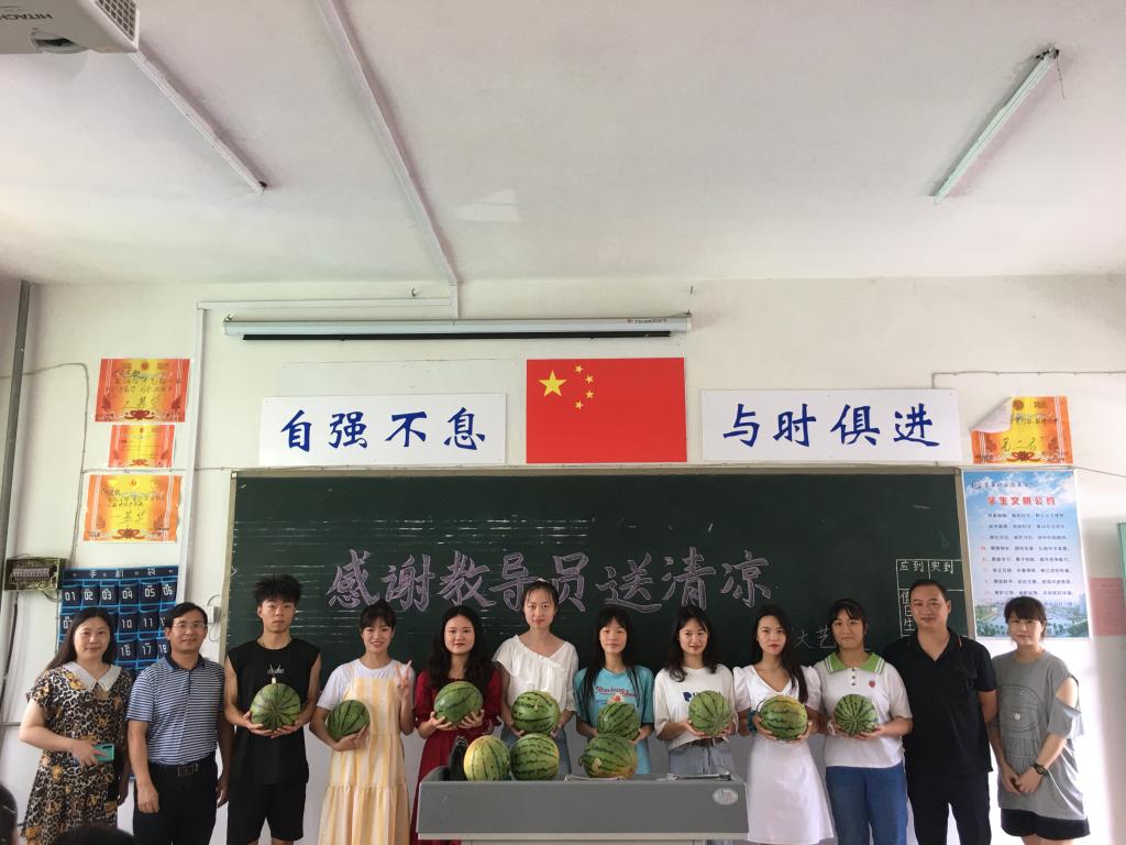 翌日,教导员来到了19大艺教,送去西塘村采购的西瓜,给学子们送来了丝丝清凉,党的浓浓关怀传递到学子们的心坎上。