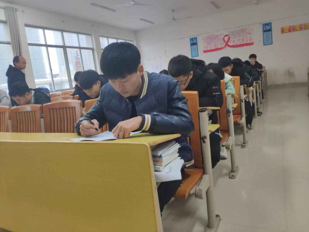 “安静考,不舞弊,看清题,靠自己。”黑板上几个醒目的字昭示着此次考试对应考者所做的严格要求。考试内容包括《团章》的理论和内容。据悉,此前,我院多次举办针对递交入团申请书,在思想上追求进步的青年学生的入团培训会,从端正入团动机、介绍中国共产主义青年团的发展历程等方面来指导学生入党,并取得了一定成效。