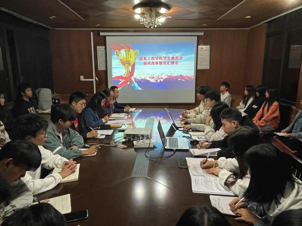 11月2日晚上,信息工程学院召开第十四届学生委员会全体例会,出席会议的有院党总支书记罗来曦、副书记简靖韡、学工科科长李纪杨。