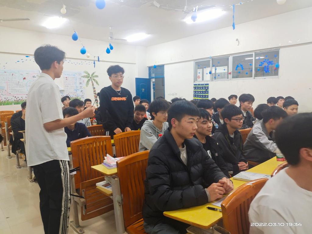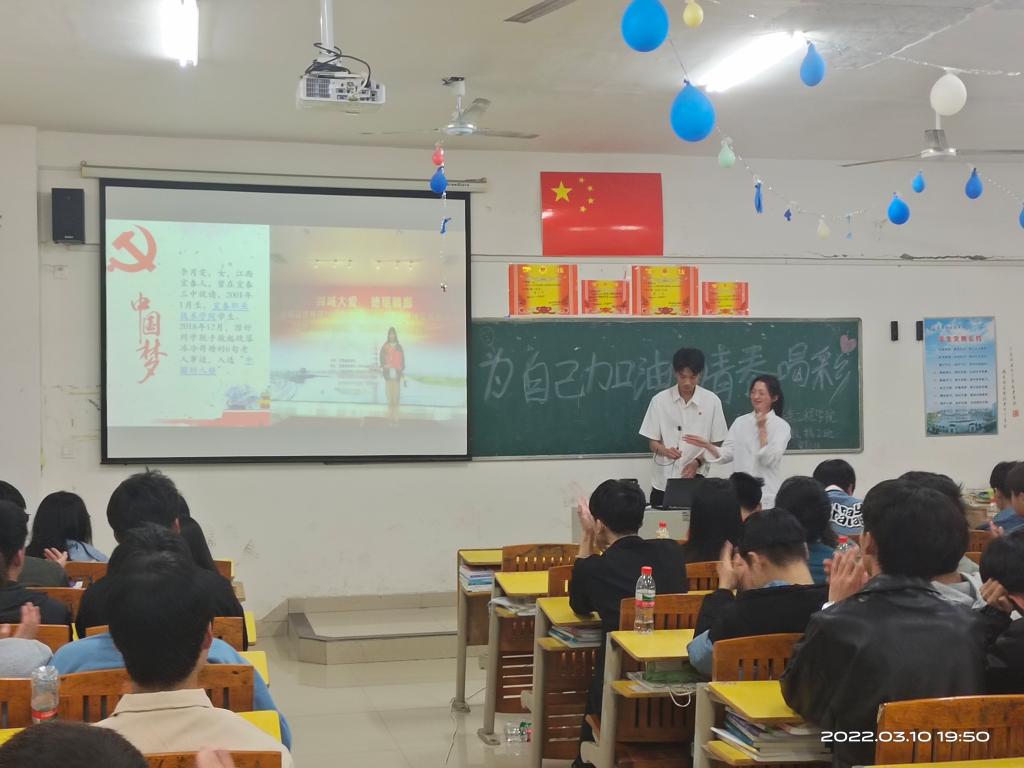 本站讯(信息工程学院刘嘉妮 学生记者徐丹阳)为引导团员青年坚定理想信念,增强学生的自信心,为3月10日,信息工程学院大数据21302班团支部开展“为自己加油,为青春喝彩”示范性主题团日活动,本次活动邀请了校学生会组织部成员和全院团支书前来观摩。