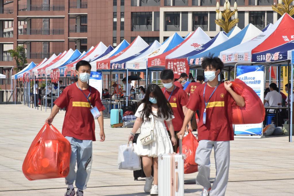 为了让新生能快速、便捷地完成报到等相关流程,迎新志愿者在校门口、迎新帐篷点、宿舍楼栋几个重要场所均安排了服务点,迎新志愿者们和各位班主任顶着烈日工作在第一线,为新同学办理入学手续、引导新生入住、向新生讲解校园,让新生感受到家的温暖。
