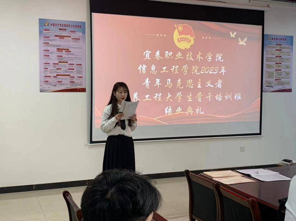 本站讯(信息工程学院 黄彪 学生记者 闻舒鹏)为切实提高大学生骨干思想政治素质,推进青年马克思主义者培养工程,3月21日,信息工程学院青马工程大学生骨干培训班于智云楼B501举行结业典礼。本期青马工程大学生骨干培训班完成了理论学习、社会实践、自主学习、交流讨论、理论测试等课程学习及考核,切实发挥大学生骨干模范带头作用。