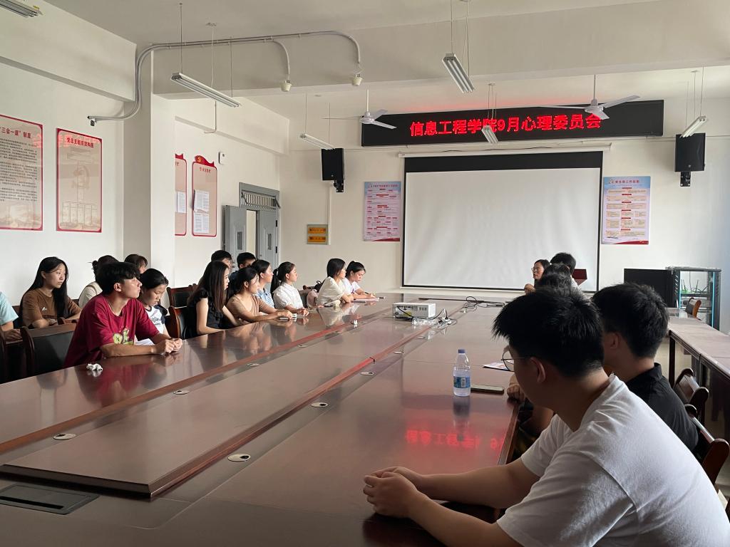 本站讯(信息工程学院 尤心雨)为进一步提升班级心理委员队伍的工作水平,强化学生心理健康教育,让同学们更好地了解、应对新学期的变化,9月13日,信息工程学院组织各班心理委员召开新学期心理健康会议。会议由辅导员谢小欣主持。