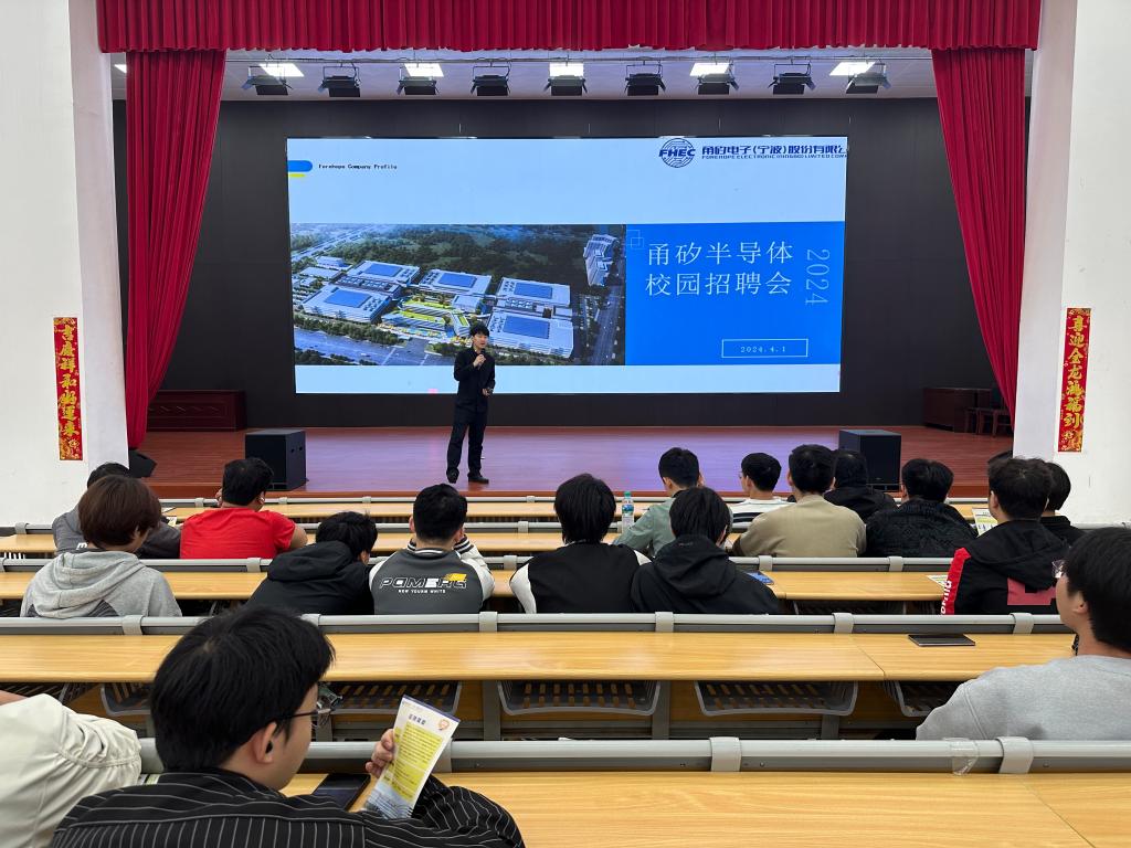 本站讯(信息工程学院 袁勋)4月1日,信息工程学院诚邀甬矽半导体(宁波)有限公司进校招聘宣讲活动。宣讲会在仁济楼小礼堂展开,学院相关专业的毕业生们热情踊跃参与。