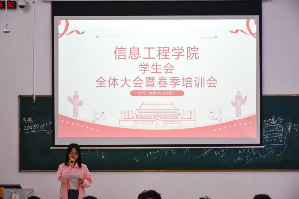 本站讯(信息工程学院 黄彪 学生记者 罗奕成)为进一步提高学生会成员综合素质,强化服务意识,凝聚组织力量,4月17日,信息工程学院学生会在智云楼B102教室召开学生会全体大会暨春季培训会。学工负责老师李纪杨、辅导员黄彪以及全体学生会成员参加。