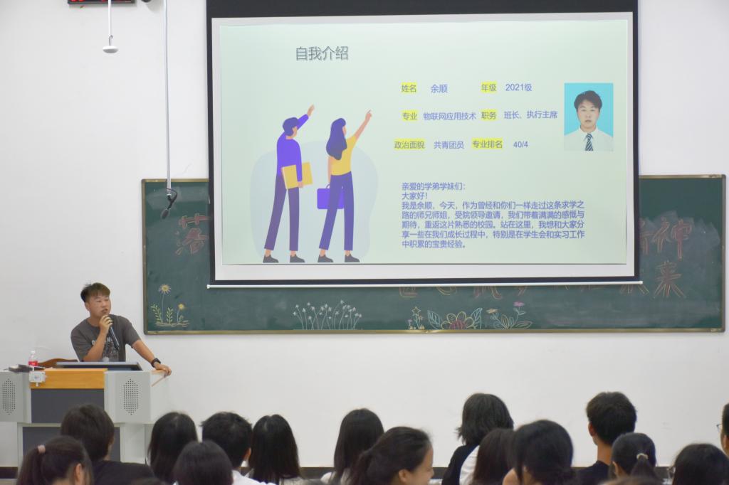 本站讯(信息工程学院 黄彪)为增强广大青年学子职业规划意识,引导树立正确的择业观、就业观,5月30日晚,信息工程学院在智云楼B102开展“师兄师姐返校园”活动。活动邀请了学院优秀毕业生余顺为同学们作分享,各班级代表参加。