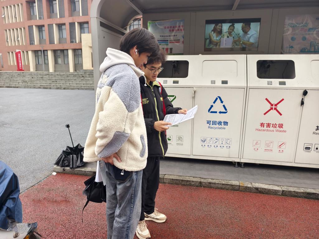 志愿者们来到学校各处垃圾箱旁,通过现场演示垃圾分类换取积分操作步骤,向同学们详细普及垃圾分类的基本知识,分享垃圾分类的实用价值,鼓励同学们从点滴小事做起,养成垃圾分类的良好习惯,引领同学们将环保理念融入到日常生活之中。