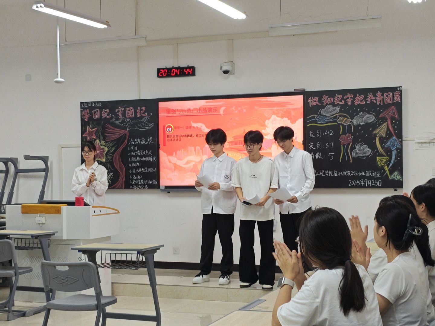 为进一步强化团员纪律意识,筑牢纪律规矩防线,持续深化青年思想政治引领,全面夯实青年政治素养根基,着力锻造政治坚定、纪律严明、作风过硬的新时代共青团员队伍,9月23日晚,信息工程学院各班级团支部在和济楼、智云楼开展学团纪、守团纪,做知纪守纪共青团员主题团日活动。