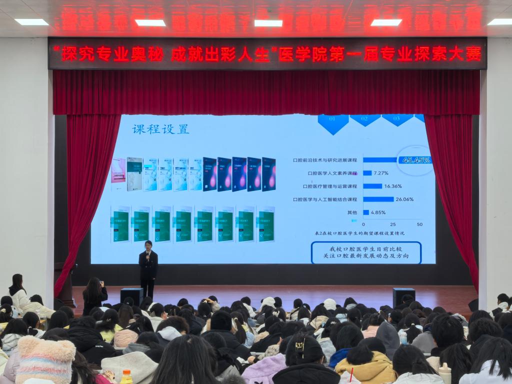 专业是人才培养的基本单元,是职业发展的基础。为帮助青年学生更好地了解专业、职业与行业的发展情况,对自己的职业发展方向、工作岗位和专业技能进行深入、全面的了解、评估和规划,12月23日,医学院(附属医院)联合“心梦”辅导员工作室成功举办“探究专业奥秘 成就出彩人生”第一届专业探索大赛。