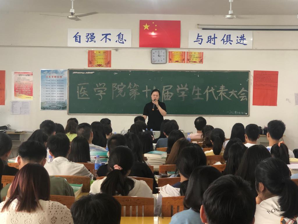 学代会期间,团总支工作负责人蔡岚玢以医学生的责任与担当、学生会工作人员的态度和能力为主题对我们进行了思想洗礼,让我们更加清楚了自己作为医学生需要有严谨,负责的态度,也让我们更深入的了解了学生会这个不辞辛劳,只为奉献,保驾护航的团体组织。随后学生代表谢孟魁同学上台宣读了“学生会代表倡议书”。