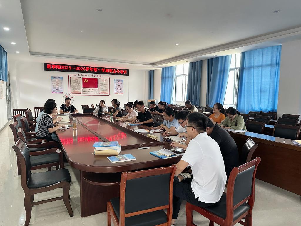 提升班主任业务素质、服务水平,打造一支高素质、有凝聚力的班主任队伍,8月31日,医学院(附属医院)召开2023-2024学年第一学期班主任培训会。医学院党总支书记王晔,副书记黄慧精,学工科科长李灿,全体辅导员,22、23级班主任参加会议,会议由黄慧精主持。